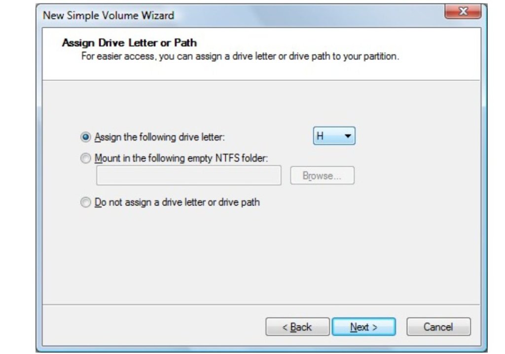 Select Drive Letter in below dialog , this is a name of you new partition. You can not select drive letter which is already available. This option automatically selected by default if you are not selecting.